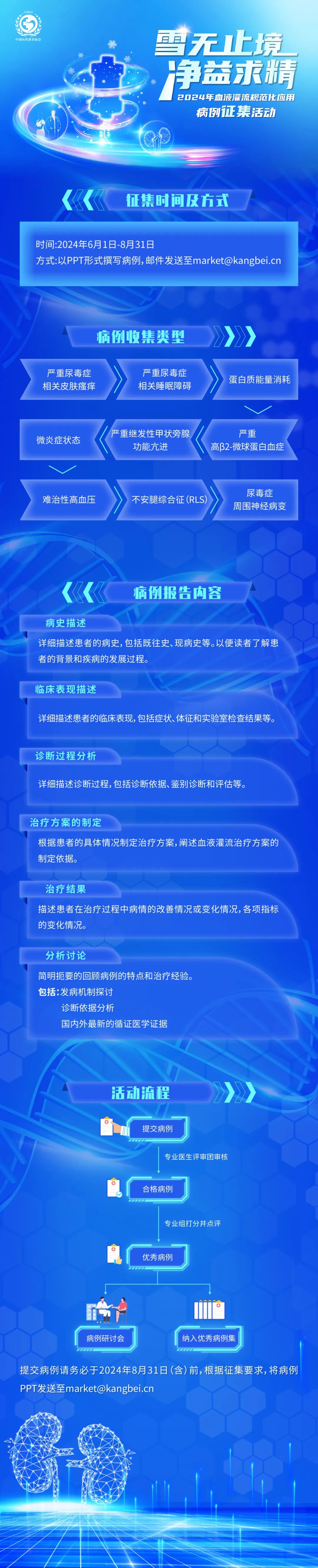 因此,中國醫藥教育協會攜手康貝醫療發起“雪無止境,凈益求精 | 2024血液灌流病例征集活動”。項目面向全國腎內科醫生征集優秀病例,旨在促進我國血液灌流治療領域最新研究成果的推廣與交流。